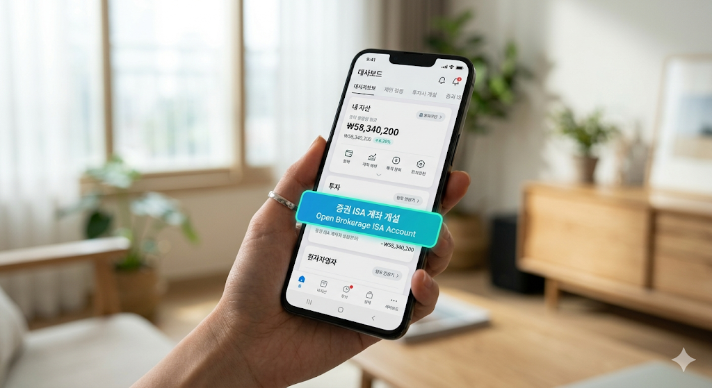 스마트폰 증권사 앱을 켜고 '중개형 ISA'를 검색하세요. 신분증만 있으면 비대면으로 5분 만에 계좌 개설이 끝납니다.